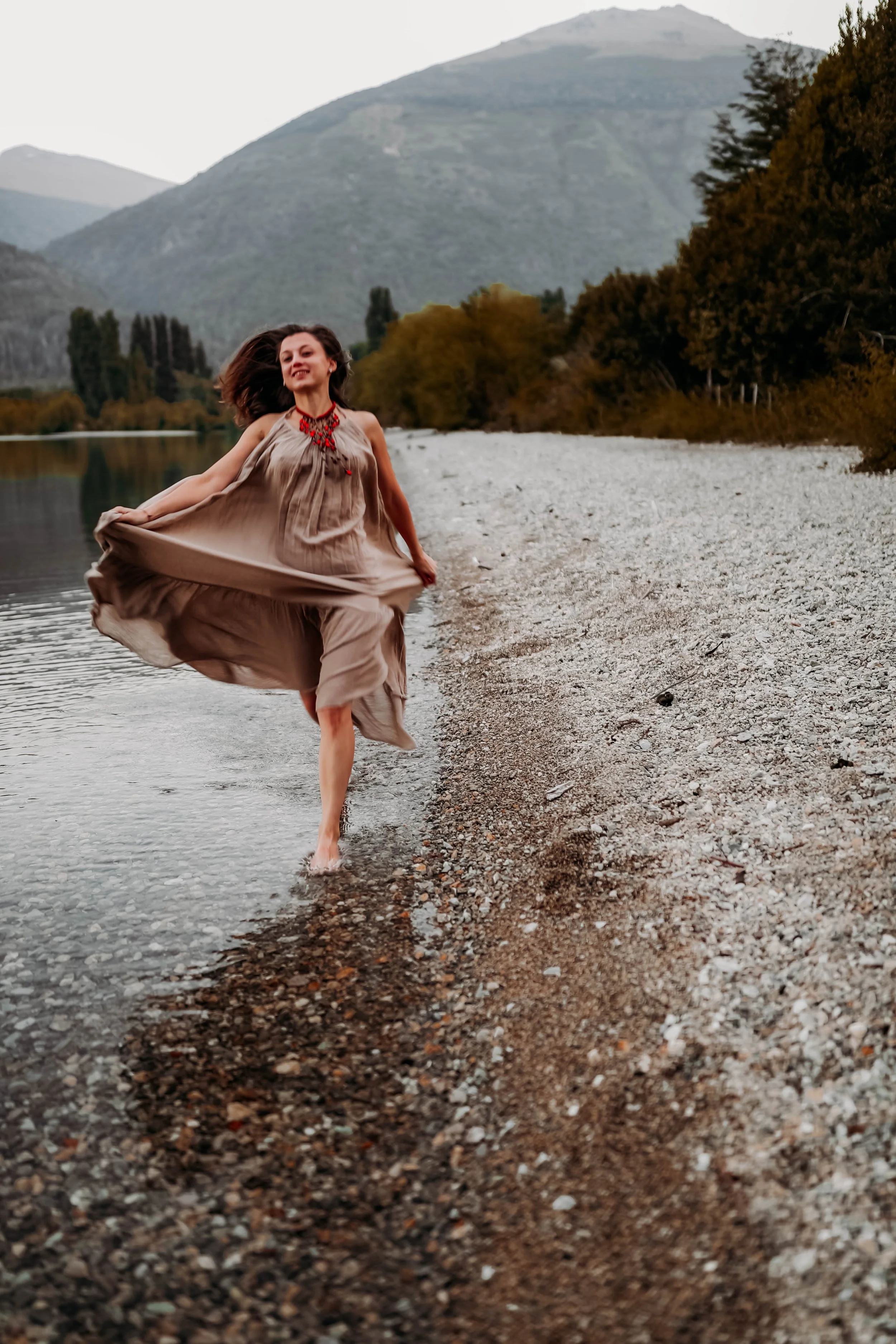 Later, at the edge of the water, she stepped in barefoot as dusk moved across the mountains. The surface of the lake held the sky in rose and gold. She did not try to look beautiful. She simply allowed herself to feel.